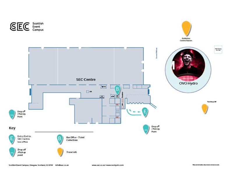 Please note, access to the SEC Centre will be limited to box office access only via the entry doors highlighted here
