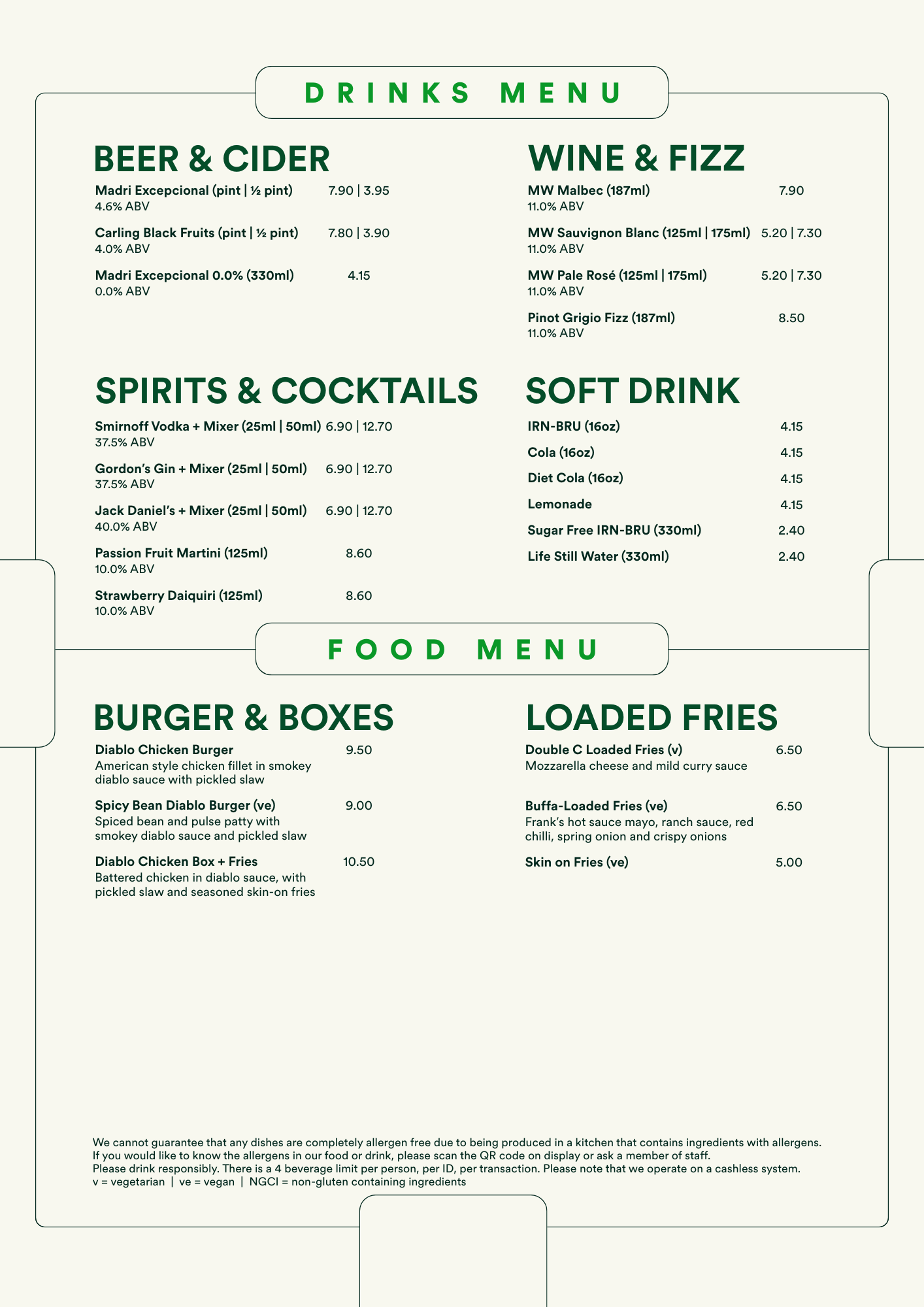 A ticket in The Nest does not include any food or drink. All purchases are payable on the night prior to taking your seat for the event.